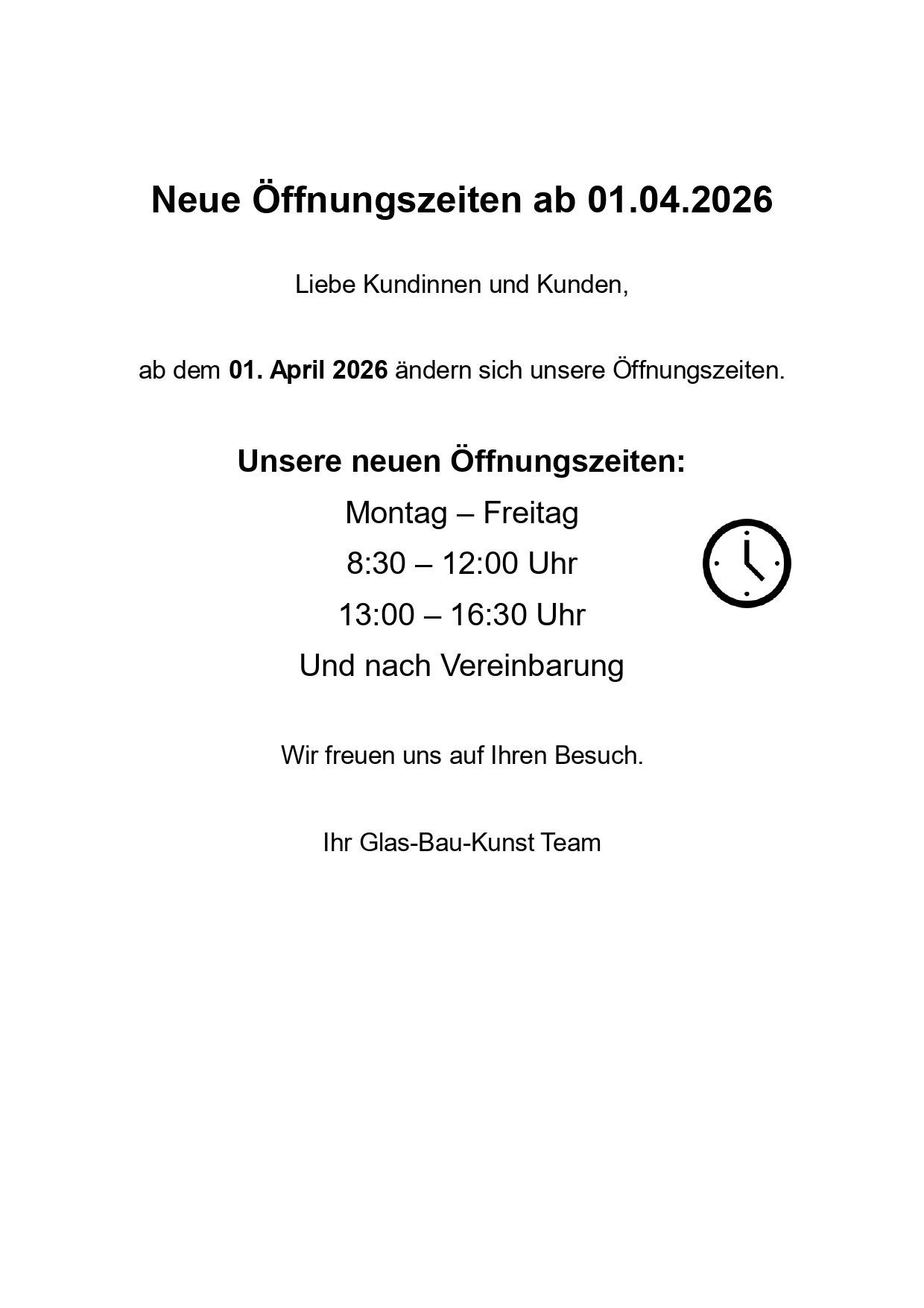 Öffnungszeiten Büro und Ausstellung